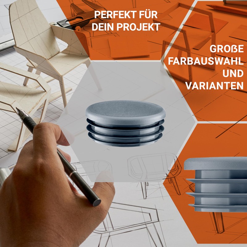 - Application for furniture feet, tube covers, UV resistant; Mounting: for insertion or insertion.
