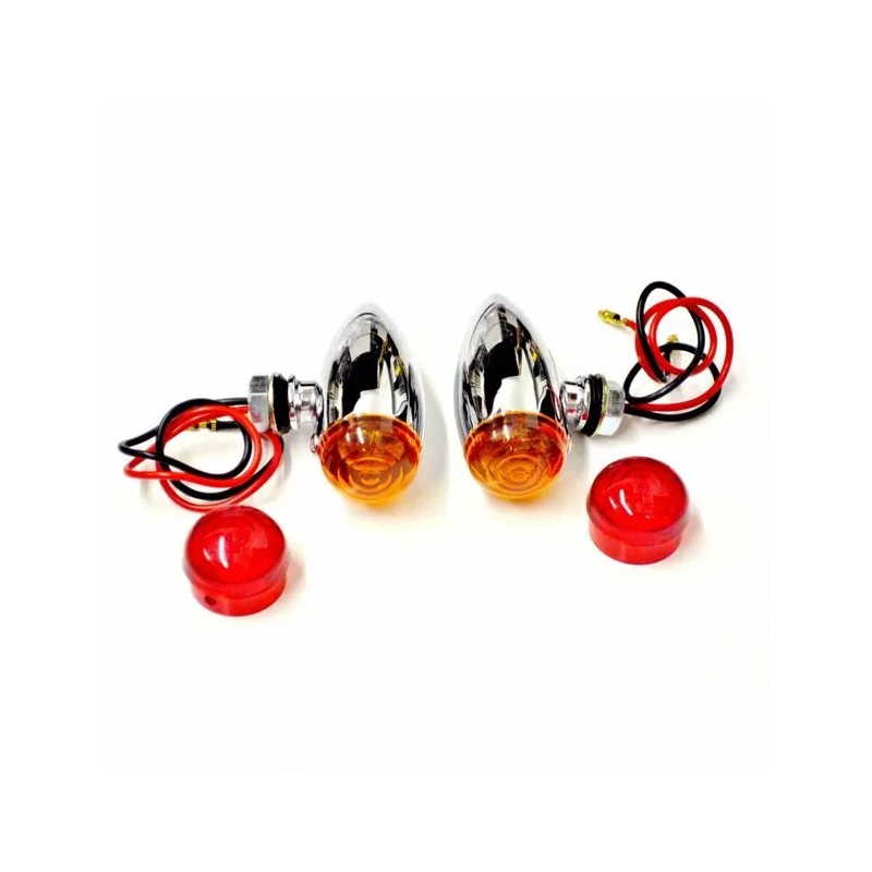 Emgo NEW PAIR OF EMGO CHROME AMBER ORANGE RED LED BULLET TURN SIGNAL LIGHTS 12V