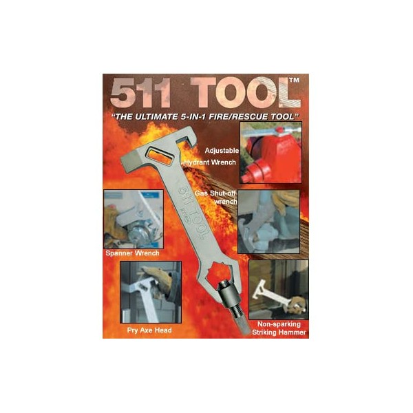 EMI 511 Tool, 5-in-1 Tool, Pry Axe, Hammer, Gas Shut-Off, Spanner Wrench, Hydrant Wrench