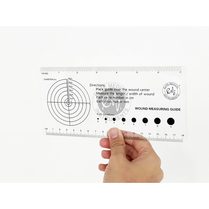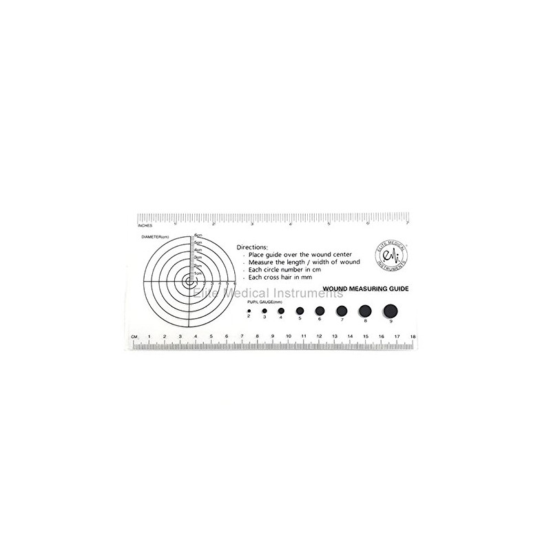 - Features imprinted wound diameter gauge and pupil dilation gauge