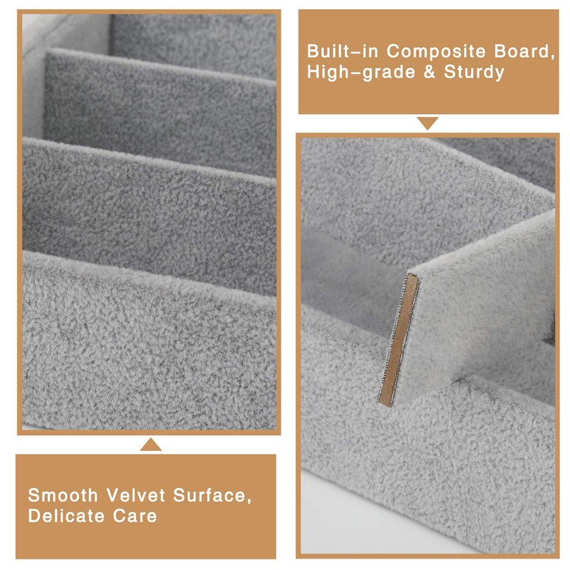 Emibele Glasses Organizer Jewelry Tray, 8 Grids Velvet Tray Watch Storage Stackable Jewelry Showcase Display Storage with Detachable Inner Dividers - Grey