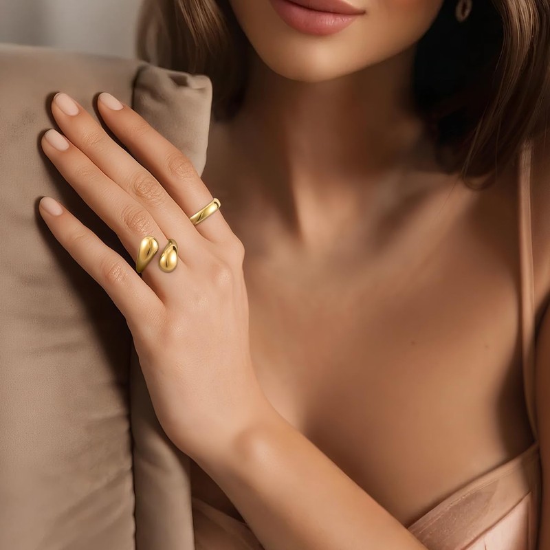 - Design Inspiration: The combination of this teardrop shaped ring with a plain band ring creates a natural and delicate jewelry. The teardrop symbolizes the vitality of life, while the plain band ring interprets timelessness and classicism with its minimalist design. These two gold rings are skillfully paired for a unique and stylish experience.