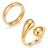 Emibele Gold Rings for Women 2PCS, Chunky Gold Rings Stainless Steel Non Tarnish, Teardrop Statement Band, Open Twisted Stackable Ring, Trendy Jewelry Gifts for Loved One, Size 9