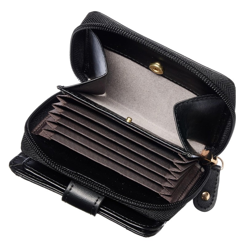 [EMILIO ROZA] Women's Lightweight Bi-Fold Mini Wallet with Skills, Combi, Mother's Day, Gift, Boxed, Os.Black