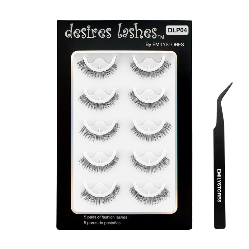 EMILYSTORES Press On Pre-Glued False Eyelashes, Wispy Light Texture Self Adhesive Lash 5 Pairs (DLP04)