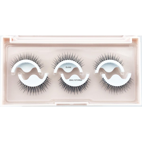 EMILYSTORES Press On Pre-Glued Lashes, 3D False Eyelashes, Natural Long Fluffy Style, 3 Pairs (DLS02)