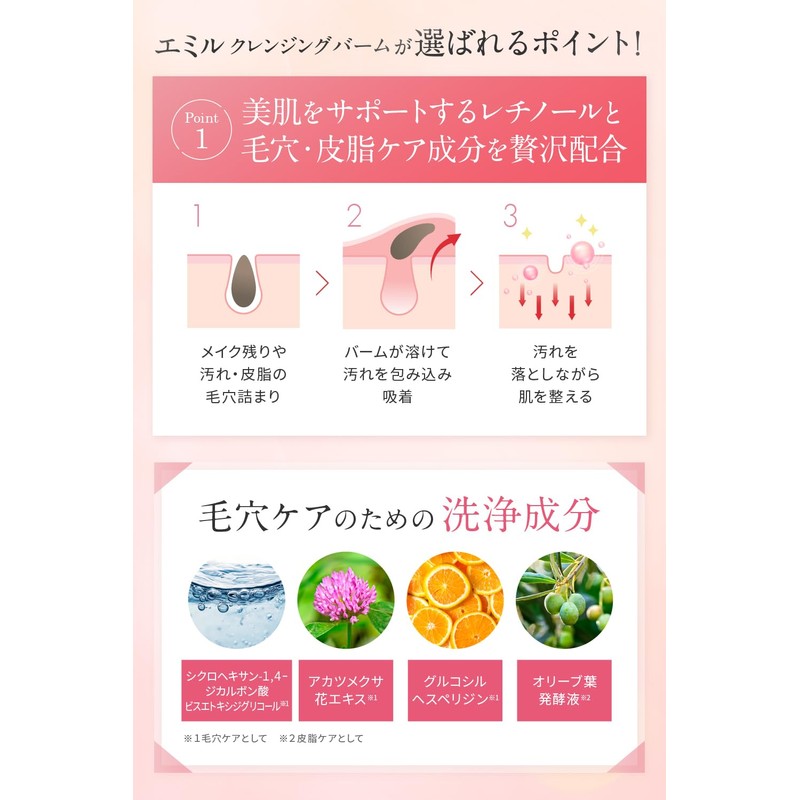 Emiru Cleansing Balm, Makeup Remover, Makeup Remover, W Face Wash Not Required, Matsueku OK, Pores Free, Additive-free, 2.8 oz (80 g)