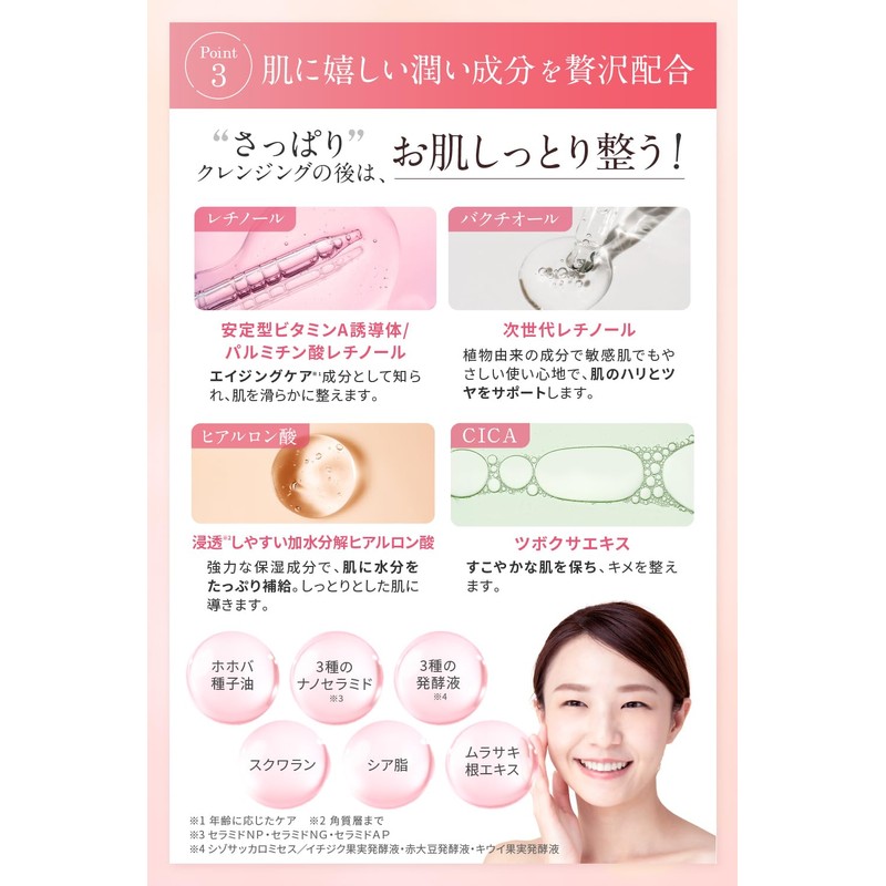 - Luxurious moisturizing ingredients: In order to keep your skin moisturized and moisturized after cleansing, we luxuriously blended jojoba seed oil, shea oil, Murasaki root extract, 3 kinds of nano-ceramide, squalane, and 3 fermentation solutions