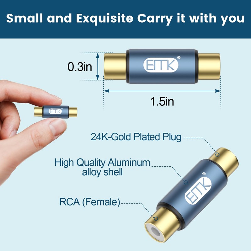 EMK 2-Pack RCA Female to Female Coupler 24K Gold-Plated RCA Connector Adapter for Extending Audio/Video Cable