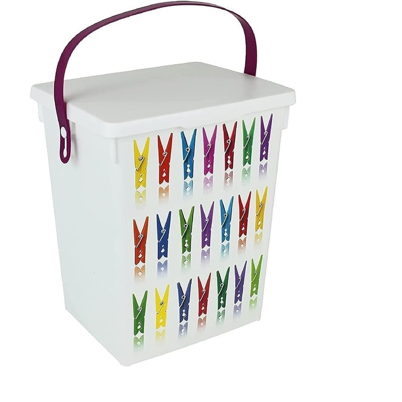 eMKay® Plastic 5Lt Peg Design Pegs Storage Box Container Caddy with Lid & Han...