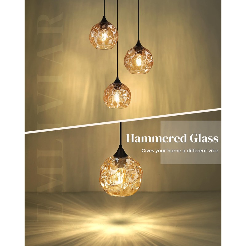 - These pendant lights for foryer boast a robust metal construction with a black finish. The amber hammered glass adds a touch of elegance, making it a perfect fit for any home style.
