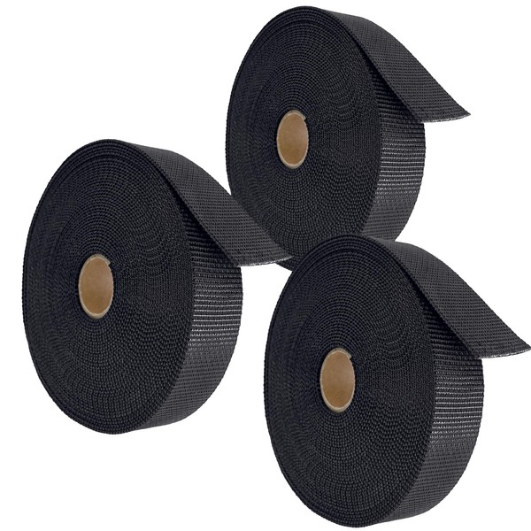 emma kites 1 Inch Polyester Webbing Black – 1800lbs Heavy Duty for MYOG Tarp Shelter Tie-Out, Hammock Tree Strap, Fabric Mesh Banner Flag Hem, Suspension Sling DIY 30 Feet | 3 Pack