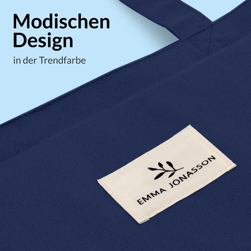Emma Lund Jute Bag - Stylish Shopping Bag with Inner Pocket and Extra Wide Base - Fabric Bag in 38 x 40 cm with Long Handle - Perfect Bag as a Shoulder Bag or Tote Bag, darkblue