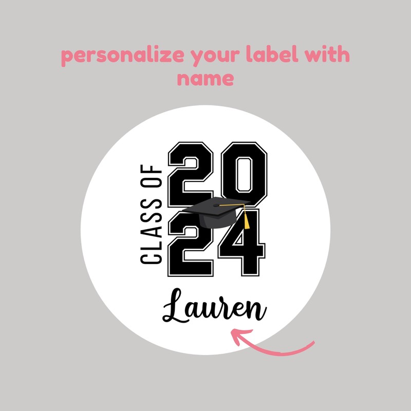 Emma Pink Studio Personalized Graduation Party Favor Labels, Graduation Announcement Invitation Envelope Seal Stickers (Black)