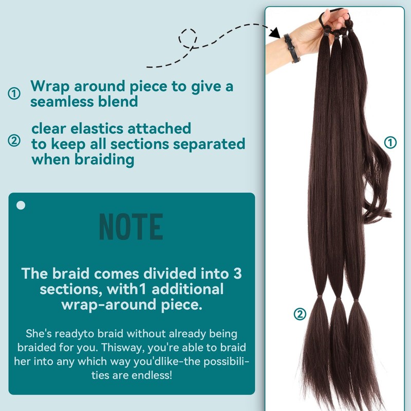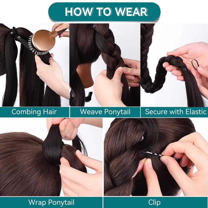 - Use: 1. Tie your hair into a ponytail. Then tie the braided ponytail around your own ponytail. 2. Separate the shorter synthetic hair piece from the longer. Divide your hair into three sections and braid it with the synthetic hair. 3. Attach the braid hairstyle with clear elastic bands and wrap the hair piece around it. 4. Secure it with hairpins.