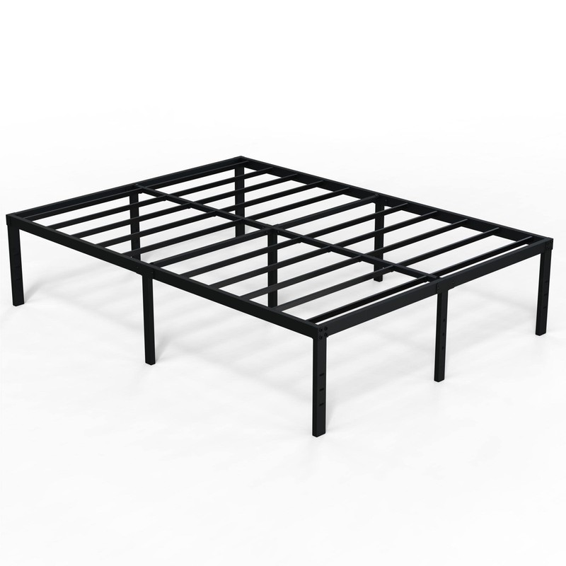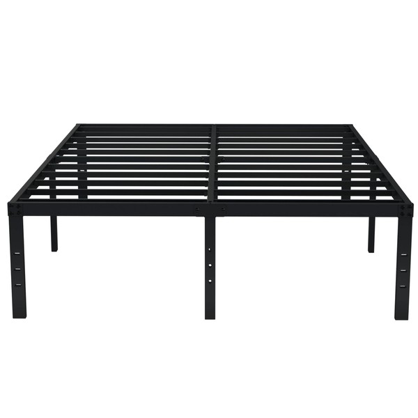 EMODA Queen Bed Frame No Box Spring Needed 18 Inch Heavy Duty Metal Tall Platform Bed Frame Queen Size with Large Storage Space, Easy Assembly, Black
