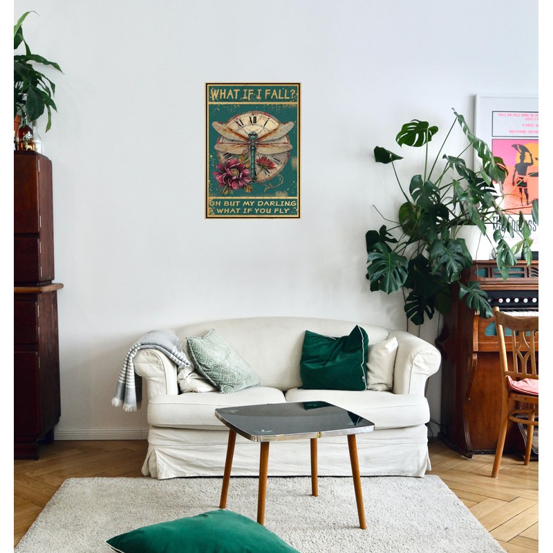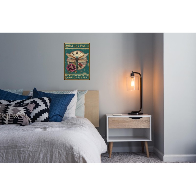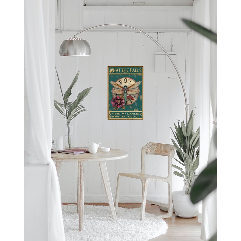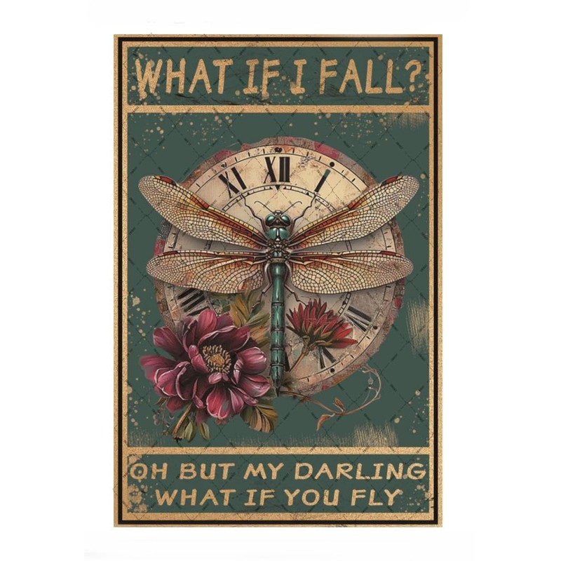 EMOHAT What If I Fall Dragonfly Hippie Boho Art Tin Signs Wall Decor Metal Sign Wall Art Decor Poster for Home Bedroom Living Room Gifts 12x8 Inches