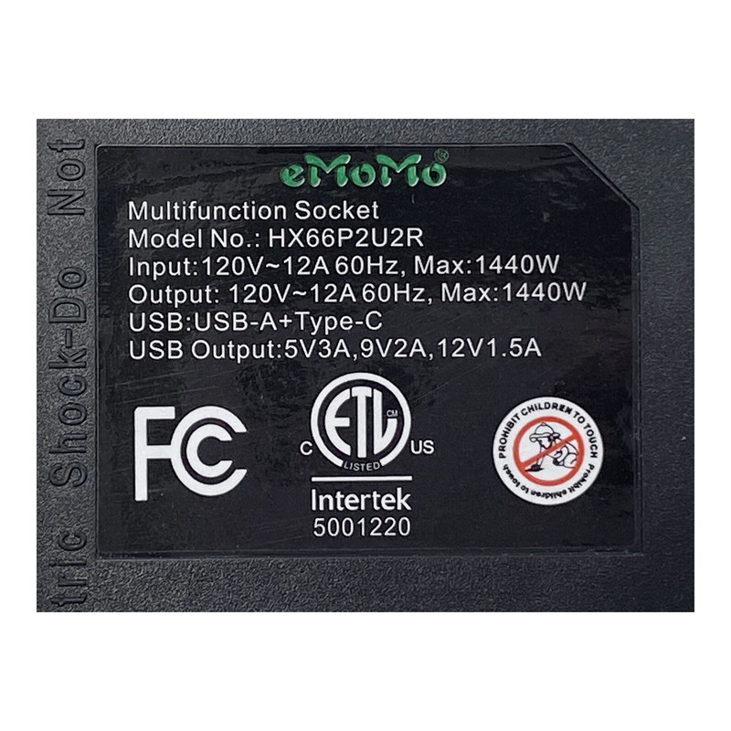 - This is Emomo 2 Outlet Dual USB A C Ports Multifunction Power Socket Model HX66P2U2R