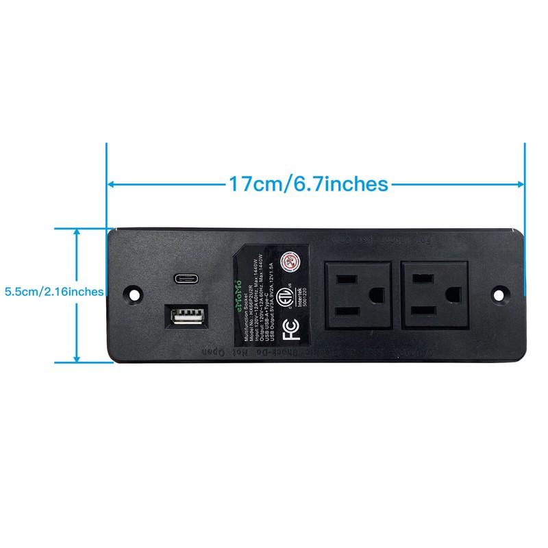 Emomo Power Recliner Emomo 2 Outlet Recessed Power Strip HX66P2U2R with USB A C Ports
