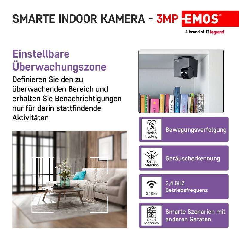 - Safe home with the IP-110 cube: This mini surveillance camera is ideal for observing pets and indoors. It provides holistic monitoring and transmits live sound and image to your phone via 2.4 GHz WiFi (EMOS H4061)