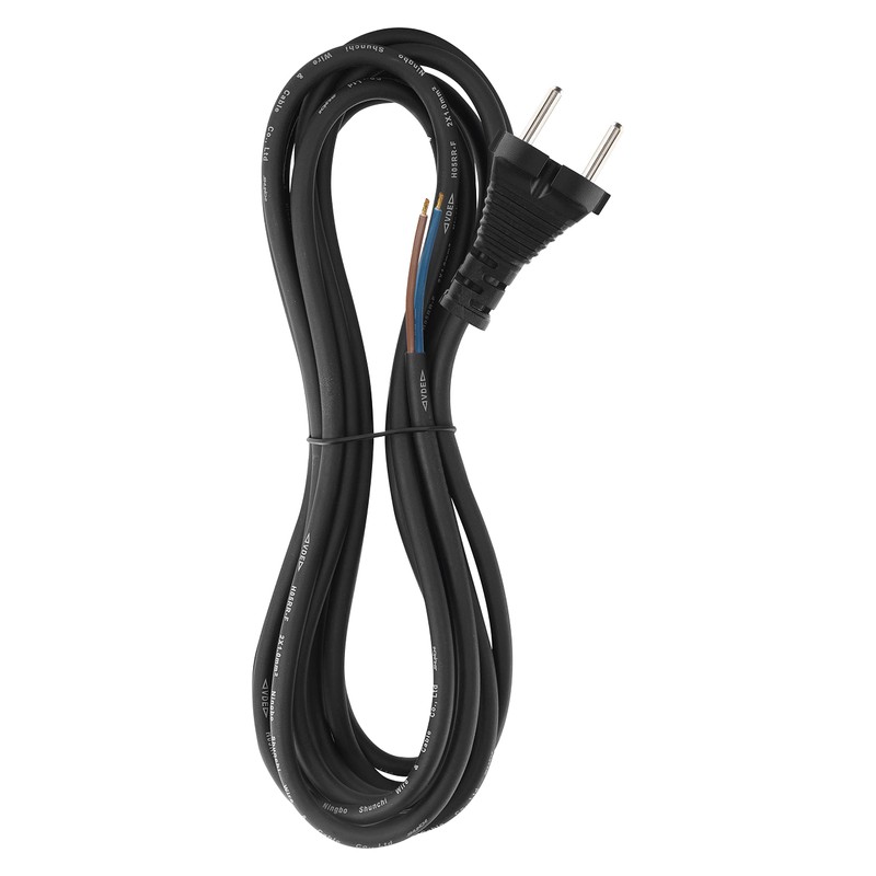 - Power cable with contour plug suitable as a replacement for defective cables for electrical appliances in the home, office, kitchen or for construction site devices