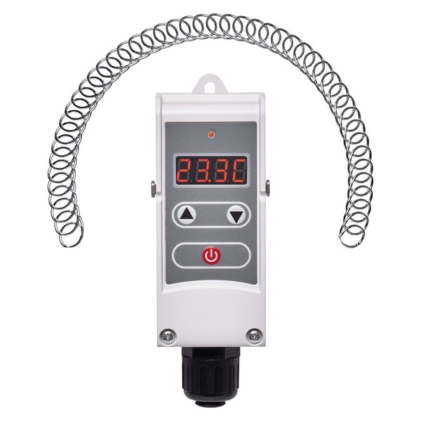 EMOS P5683 45 x 45 x 110 mm Contact Thermostat with Adjustable Switching Sensitivity Coil Spring and Digital Display / Pipe Feeding Thermostat Setting Range 5°C to 80°C