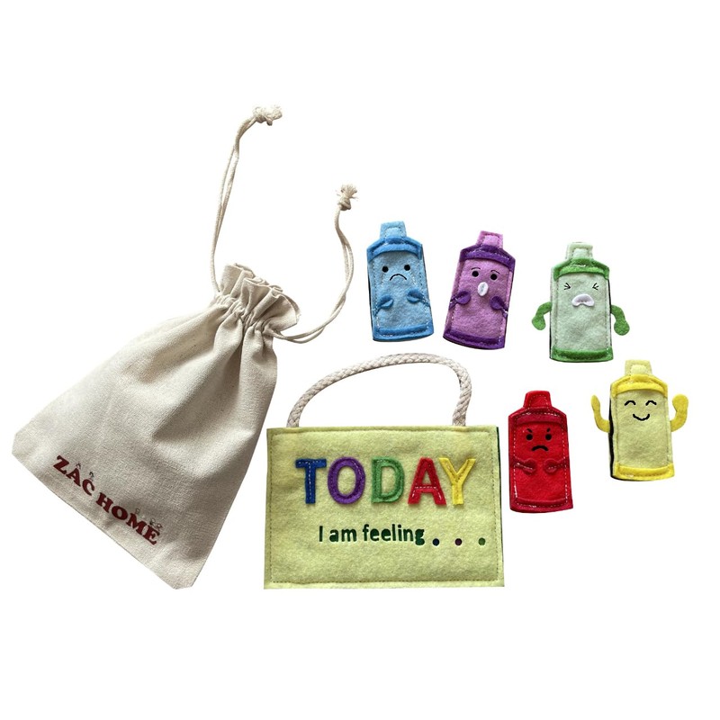 Emotion Feeling Family: 5 Emotions Finger Puppet Set with Bag - Happy, Sad, A...