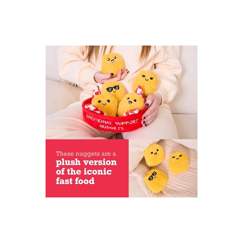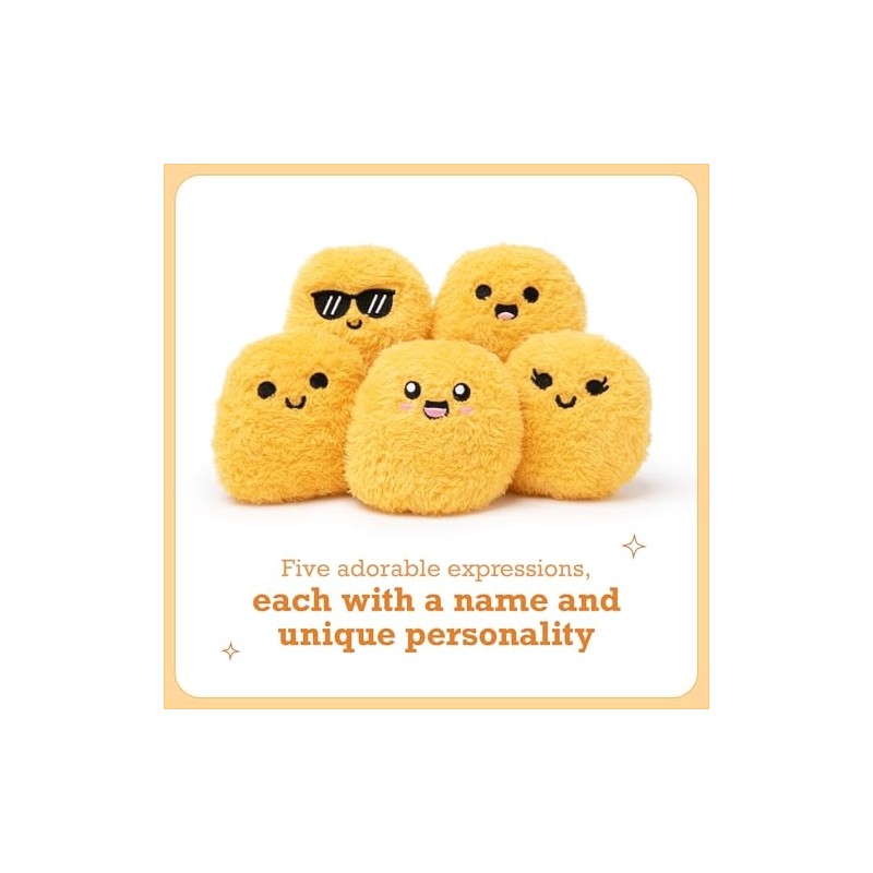 • Nugget Pillow Joy: Emotional Support Nuggets are the squishy versions of your favorite pals. Enjoy spending time together, no matter whether you're out on the go or snuggled up at home.