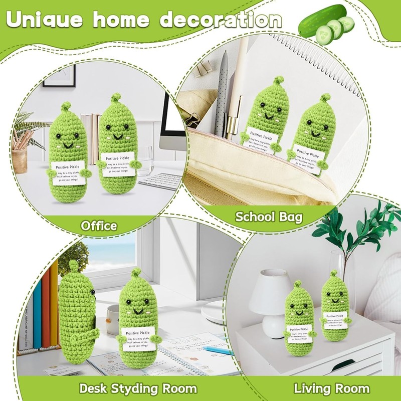 - đăVersatile Decorationă The handmade positive pickle cute pickle doll is not just a collectible dolls toy and funny gift, but also can be used as a decoration for your home, office and party. They are delightful additions to your desk, shelves, or any corner that needs a touch of positivity. With suitable size, it is very suitable for carrying, you can take it anywhere you want when travelling or other outdoor activities, whether at work, on a picnic or camping.