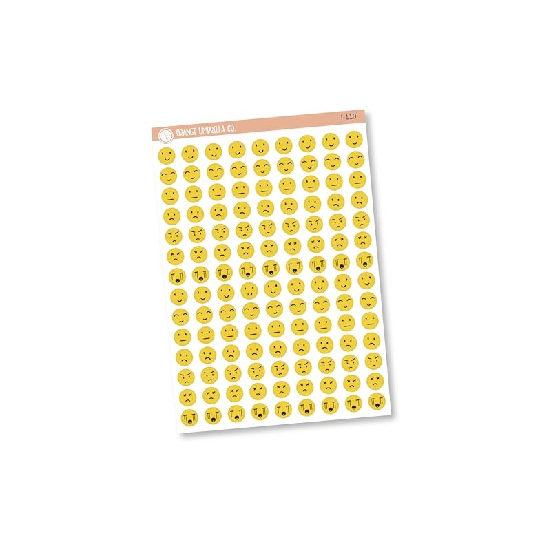 Emotions Face Tracker Icon Planner Stickers, Color Fill Emotion Icons (I-110)
