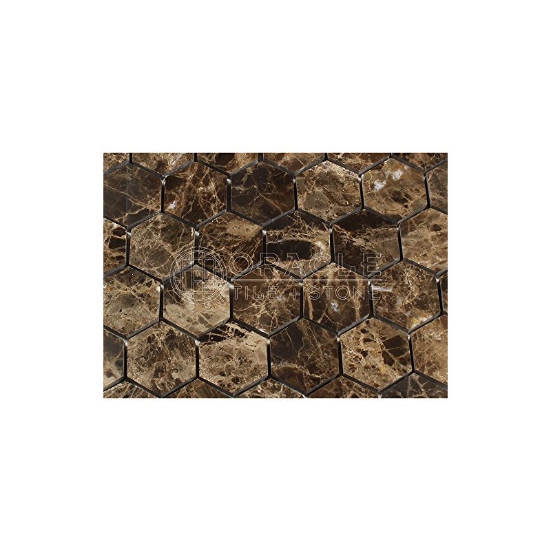 Emperador Dark Spanish Marble 2 inch Hexagon Mosaic Tile, Polished