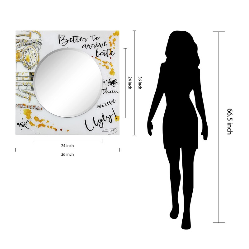 Empire Art Direct Ugly Never Rectangular Beveled Mirror on Free Floating Reverse Printed Tempered Art Glass Ready to Hang, 36" x 36"