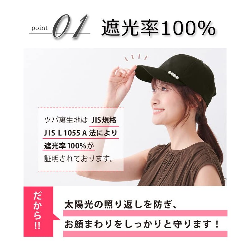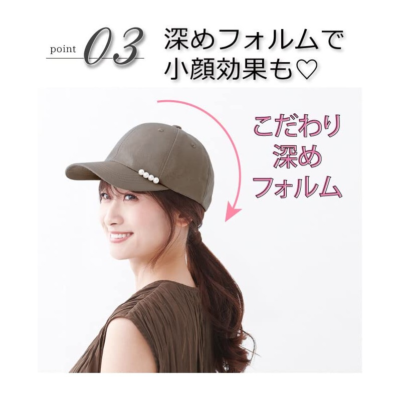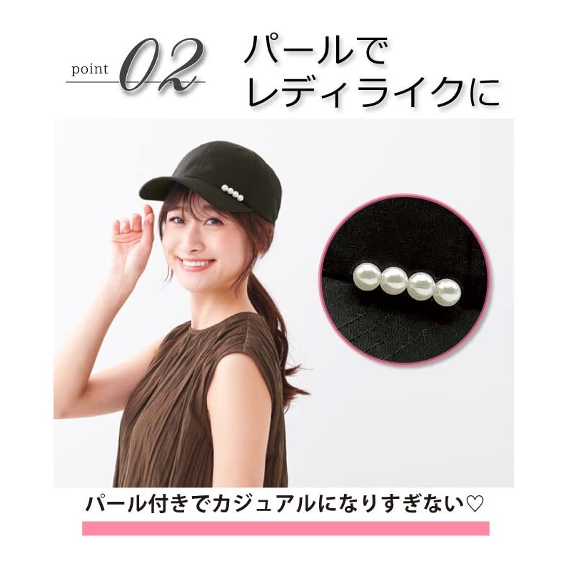 [Empret Veil] Deep, Adult, Cute, Pearl and Adult Feel, Cap, Hat, 100% Full Light Blocking, One Size Fits Most, 22.0 - 22.8 inches (56 - 58 cm), Brim, 2.8 inches (7 cm), Spring/Summer, UV Protection,