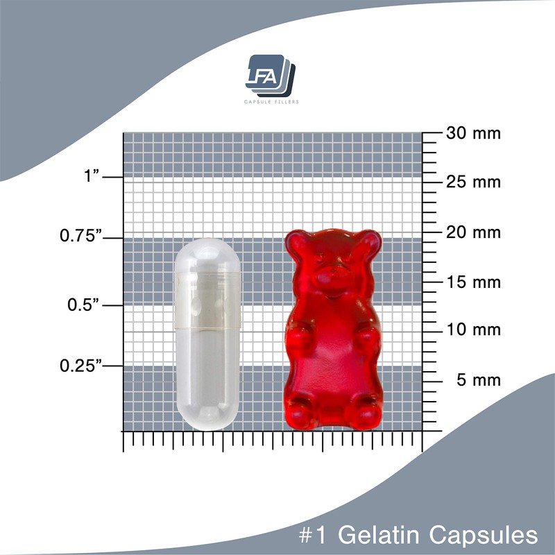 - GREAT CAPSULE SIZE FOR ADULTS, OLDER CHILDREN, & MEDIUM-SIZED PETS: Size 1 empty capsules are 0.76" long and 0.27" in diameter. Depending on your product density, this capsule holds 280mg-580mg. #1 capsules are medium-sized for adults, children aged 12+, and medium-sized pets. Refer to our capsule size chart images to compare size 1 capsules to other empty capsule sizes.