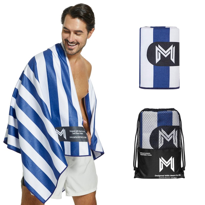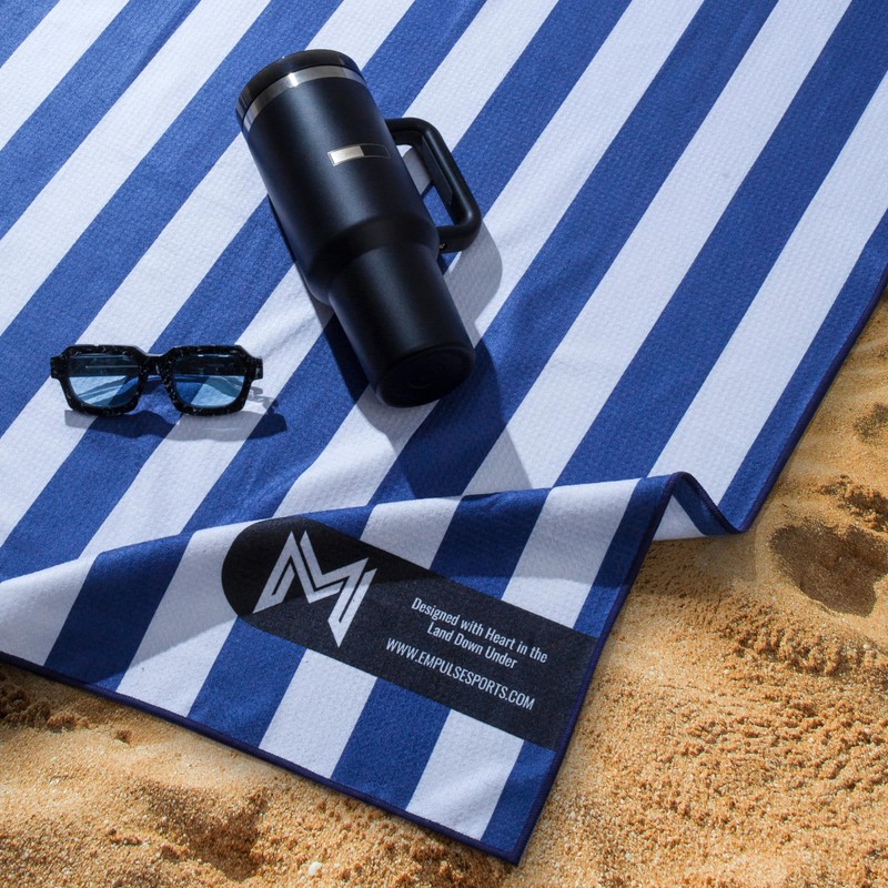 EMPULSE Sand-Free Beach Towel | Ultra-Absorbent & Quick-Drying | Premium Waffle Weave Feel | 160x80cm | Lightweight & Compact – Ideal for Beach,Travel, Pool, & More! (in Between The Stripes)