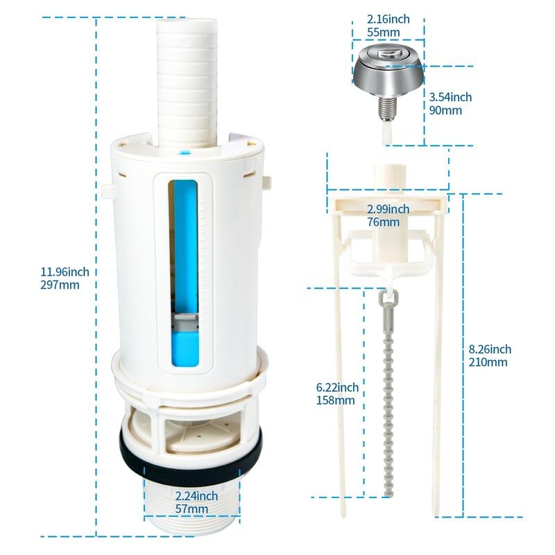 - 5.Package Specifications: The drain valve kit includes corresponding flush buttons, toilet tank flush valves, adjustable brackets, and instructions. Please feel free to contact us if you have any questions.