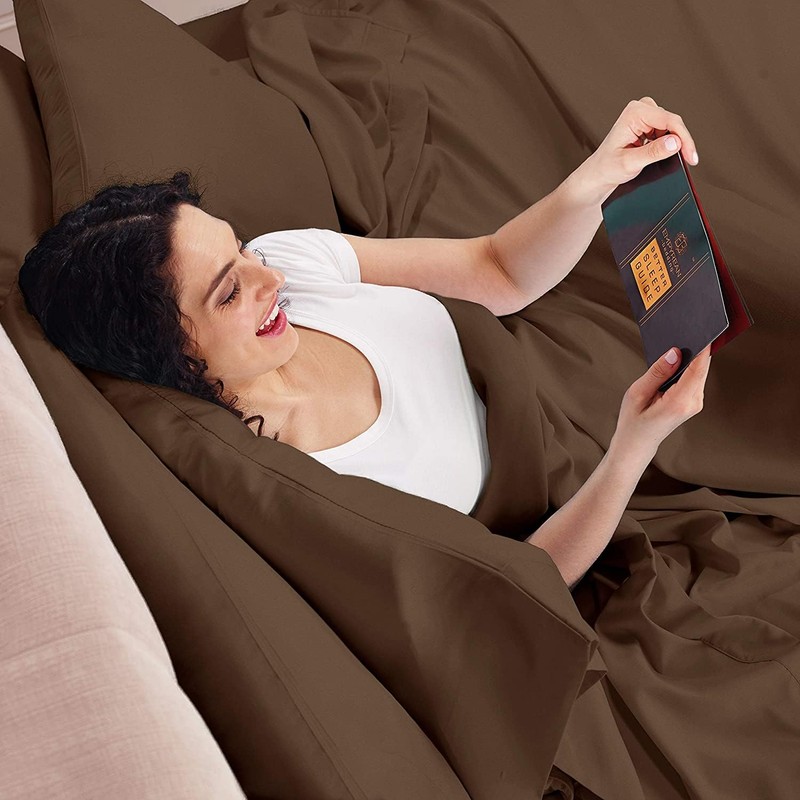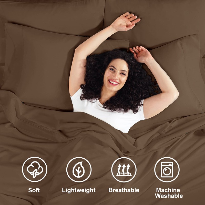 Empyrean Bedding Extra Deep Pocket Fitted Sheet - 6 Piece Sheet Set - 110 GSM Deep Pocket Sheets - Deep Fitted Sheets Set - 84 x 72 inches - Cal King Size Sheets - Chocolate Brown