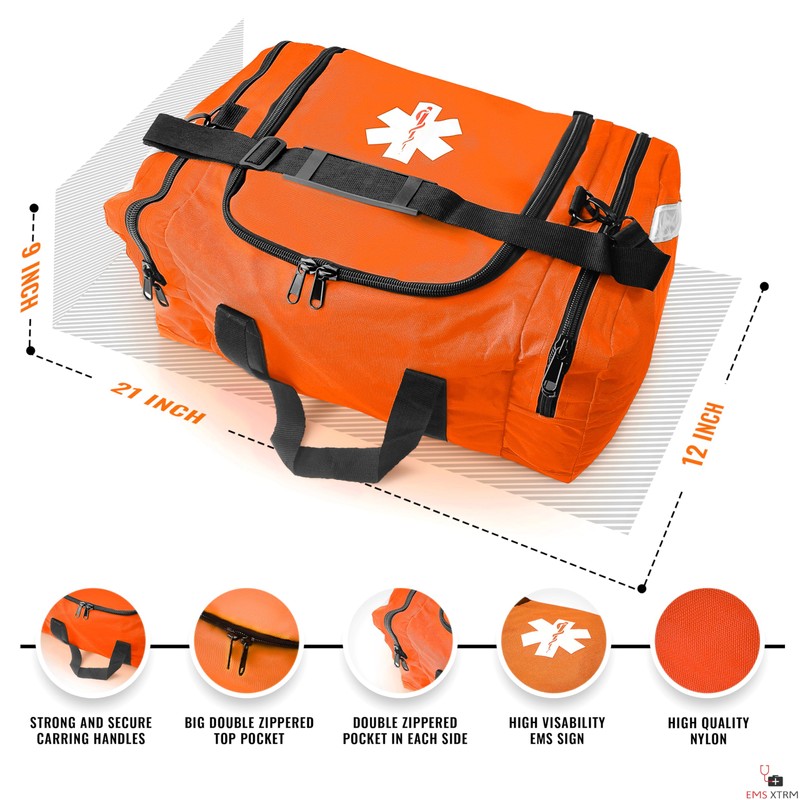 EMS XTRM Large EMT Bag - Spacious, Multi-Compartment Medical Bag, Empty First Aid Bag for EMS, Hospitals, and Rescue Teams, Durable and Water-Resistant (Orange)