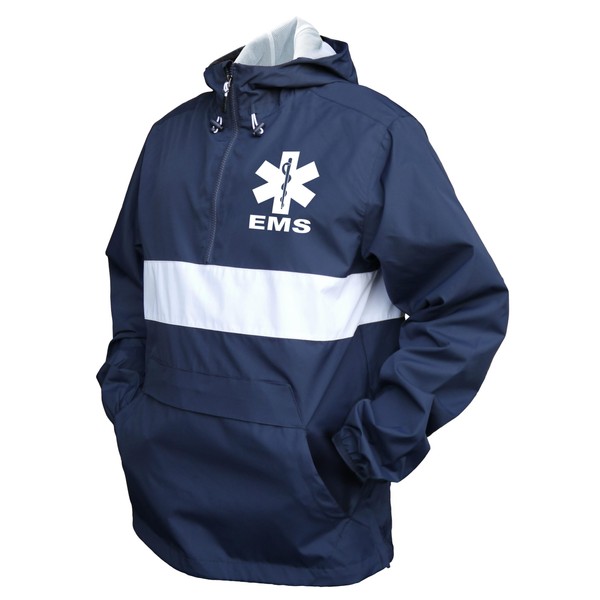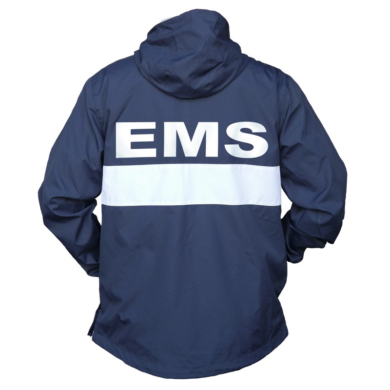 EMS Zipped Pocket Anorak in Navy with White/Reflective Decoration.