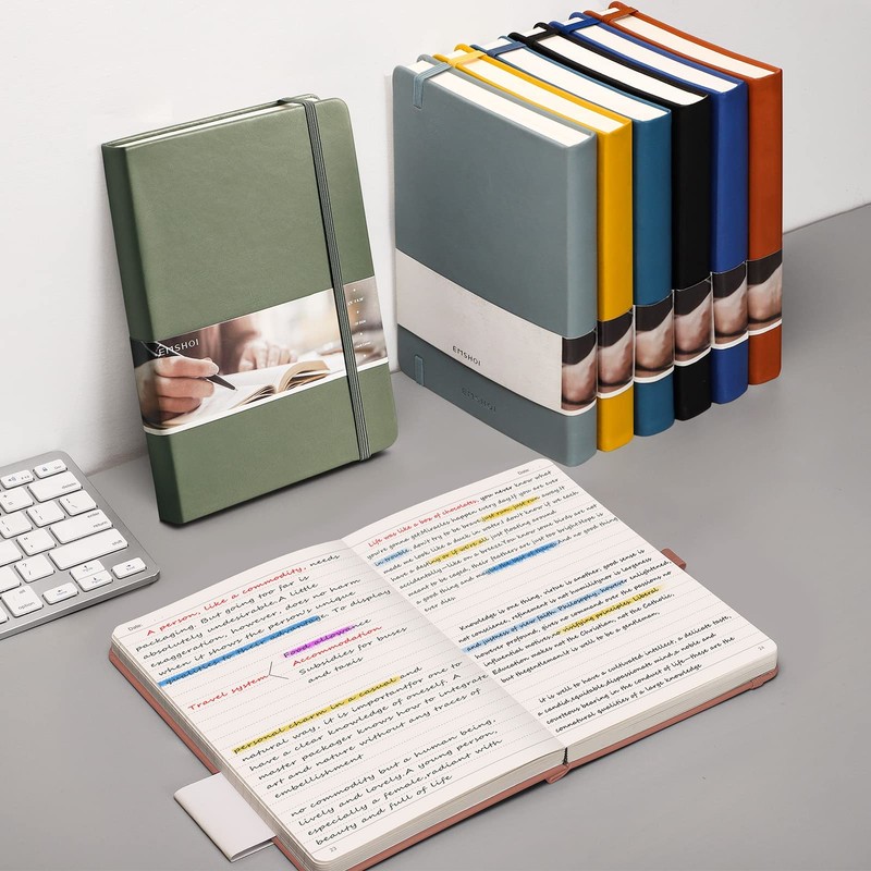 - Humanized Design: Each a5 journal notebook comes with an elastic closure, 1 pen holder loop, 2 bookmarks, 1 back pocket, sticky notes, securely stitched and glued binding, and a humane rounded arc corner design