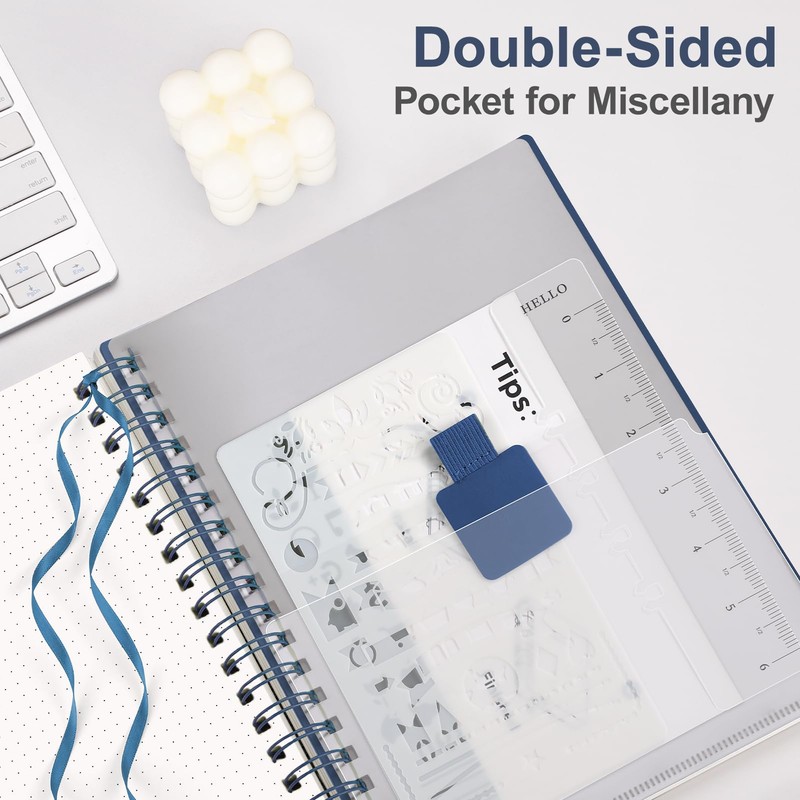 - USEFUL EXTRAS The Bullet Dot Journal offers useful extras such as a 1 double-sided PVC pocket, a pen holder, a ruler and a bookmark strip. These additions make it easy to organise and store your important documents and pages.