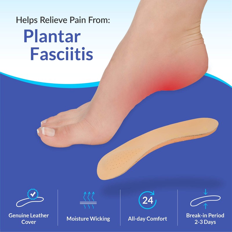 • GENUINE LEATHER COVER: With a genuine leather cover, these orthotic insoles are both durable and comfortable. The leather cover helps to keep your feet dry all day no matter how your boots, sneakers, or shoes are made.