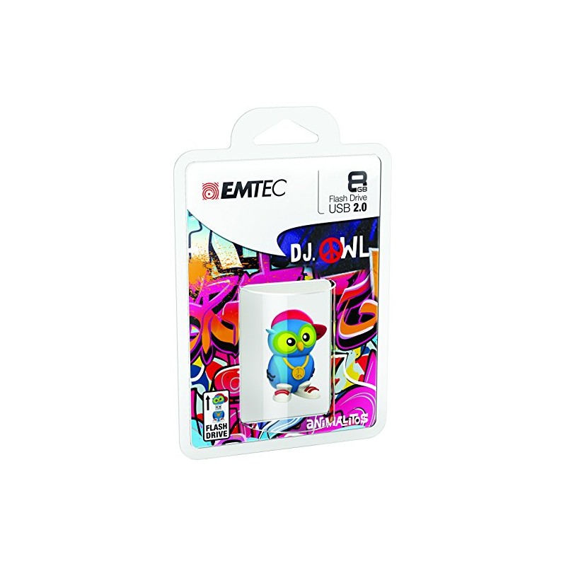 Emtec Animalitos 2.0 USB Flash Drive, 8GB, DJ Owl, ECMMD8GM341