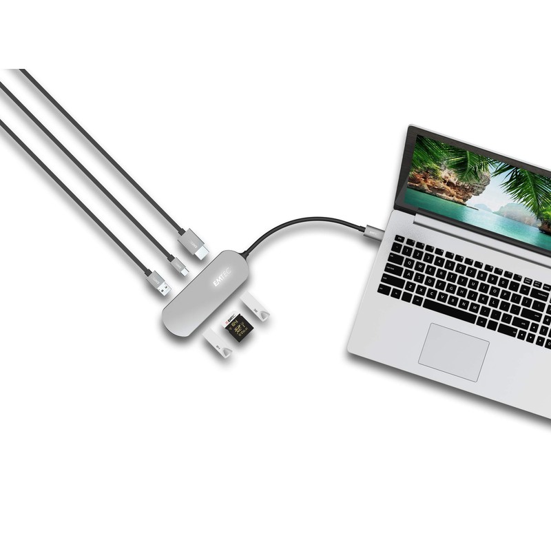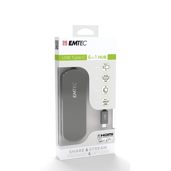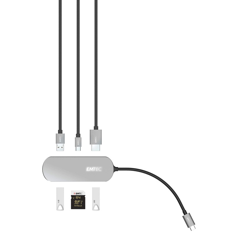 EMTEC USB-Type-C Hub T650C Including SD Card Reader 3 x USB-A 3.0, USB-C, SD Card Reader HDMI