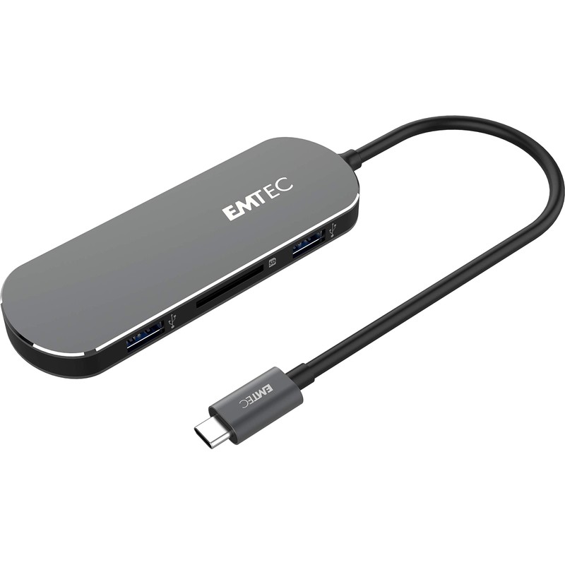 EMTEC USB-Type-C Hub T650C Including SD Card Reader 3 x USB-A 3.0, USB-C, SD ...