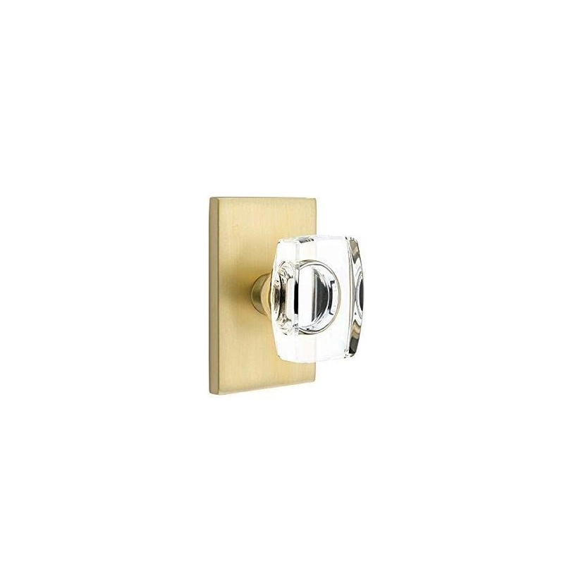Emtek Privacy Set, Modern Rectangle Rosette, Modern Windsor Crystal Knob (Satin Brass)