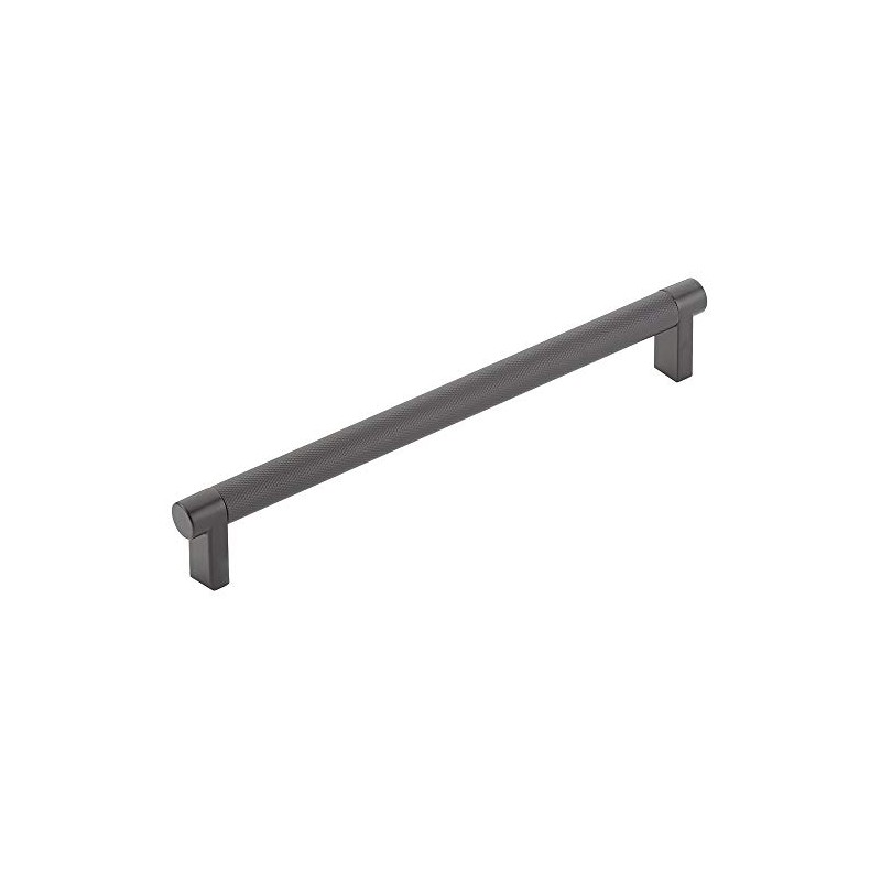 Emtek Select Knurled Cabinet Pull with Flat Black (US19) Stem Finish - Choice of Size - 84056.RECUS19.KNUS19 - Center-to-Center: 8"