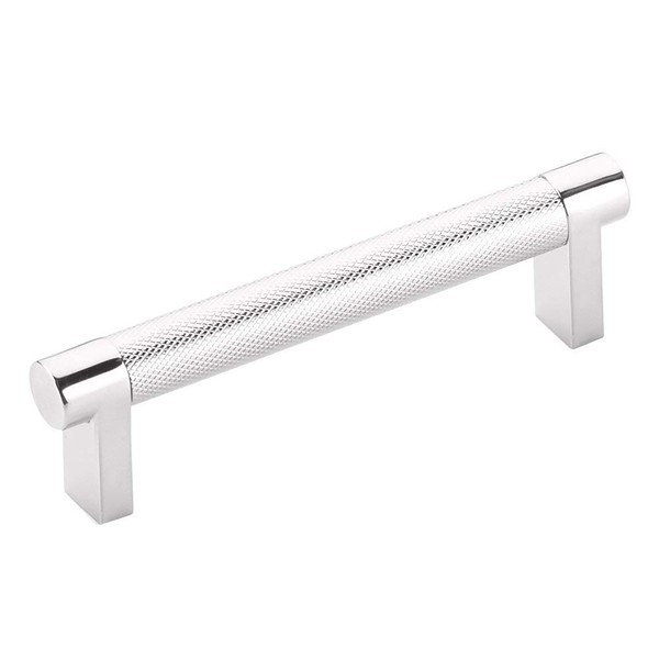Emtek Select Knurled Cabinet Pull with Polished Chrome (US26) Stem Finish - Choice of Size - 84053.RECUS26.KNUS26 - Center-to-Center: 4"