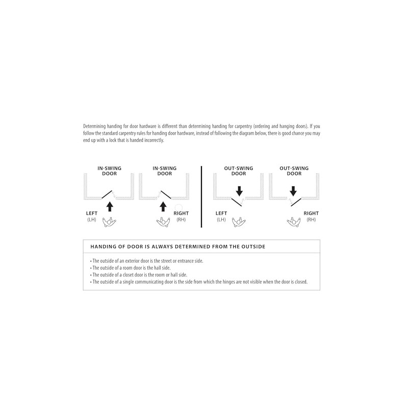 - Fits any door between 1 3/8" to 2 1/4" thick with a 2 1/8" bore standard door prep