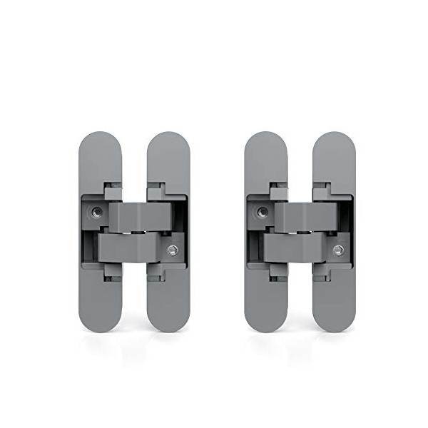 Emuca - Invisible Hinge for Access Doors, Set of Two Invisible Hinges for Heavy Doors, 40 Kg (88 lb) Load, 180º Aperture, zamak, Metallic Grey